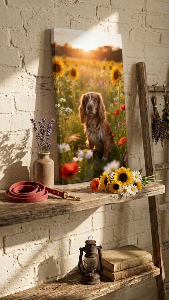 Egyedi vászonkép virágos mezővel – örök emlék a kedvencedről