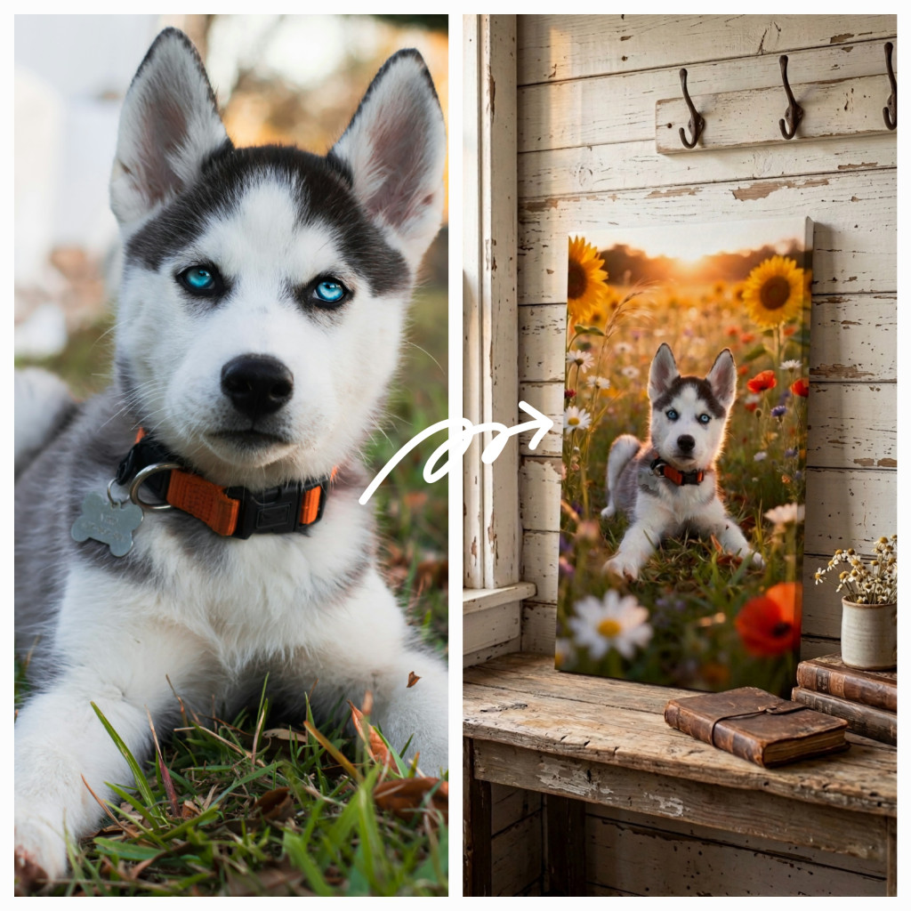 Ez a vászonkép nem egy egyszerű dekoráció – hanem egy személyes, szívhez szóló emlék, amely minden nap mosolyt csal az arcodra. Legyen szó kutyáról, cicáról vagy bármilyen szeretett kedvencről, minden kép teljes mértékben egyedi, a Te elképzelésed alapján készül el.