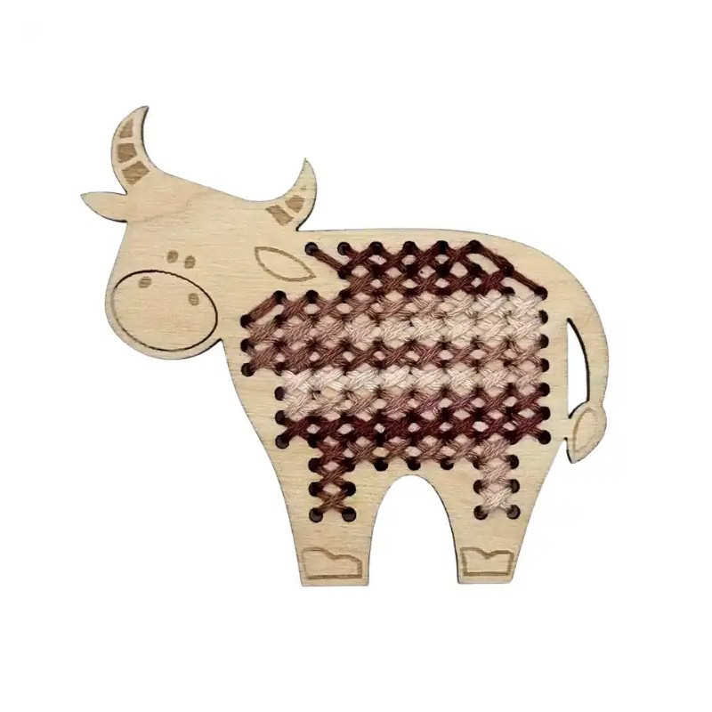 Z11437 Embroidery kit on plywood for children - Cow 7,5x6,5 cm