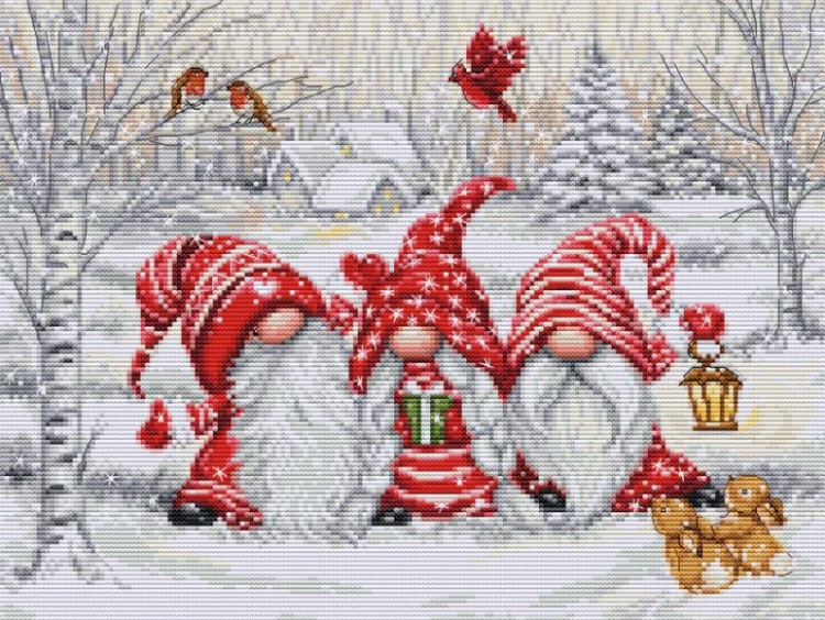 BU5050 Three Gnomes in Wood 29x22 cm